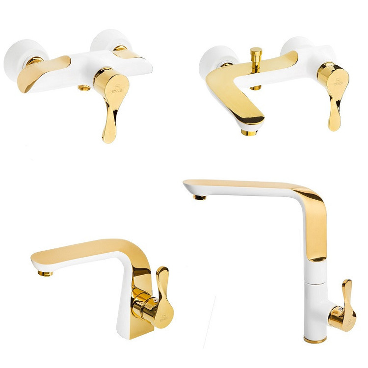 ست کامل شیرآلات تنسر مدل فریس سفید طلایی یکی از خاص ترین مدل های موجود در بازار می باشد با انتخاب این مجموعه زیبایی خانه را دو چندان کنید و جلوه ای خاص به آشبزخانه ، حمام و سرویس بهداشتی خود دهید. رنگ شیرآلات تنسر مدل فریس به علت کیفیت بالا و تکنولوژی خاص در تولید آن ، تغییر نکرده و از بین نمیرود و حتی بعد از چند سال استفاده نیز مانند روز اول زیبا و چشم نواز باقی می ماند