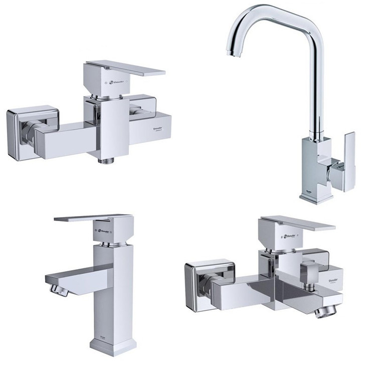 این محصول شامل شیر ظرفشویی ، روشویی ، حمام و توالت می باشد که داشتن کارتریج سرامیکی مقاوم در برابر حرارت و فشار بالا ، پرلاتور کاهنده مصرف آب و نصب سریع و آسان از ویژگی های این ست است .